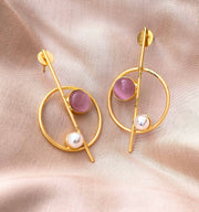 Minimalist Gold Orbit Earrings – Rose Quartz & Pearl Accents